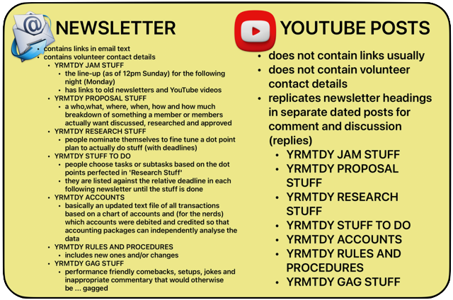 - HOW: sign up for a BCC (private) weekly (Sunday 12pm) update with the following jam's line-up